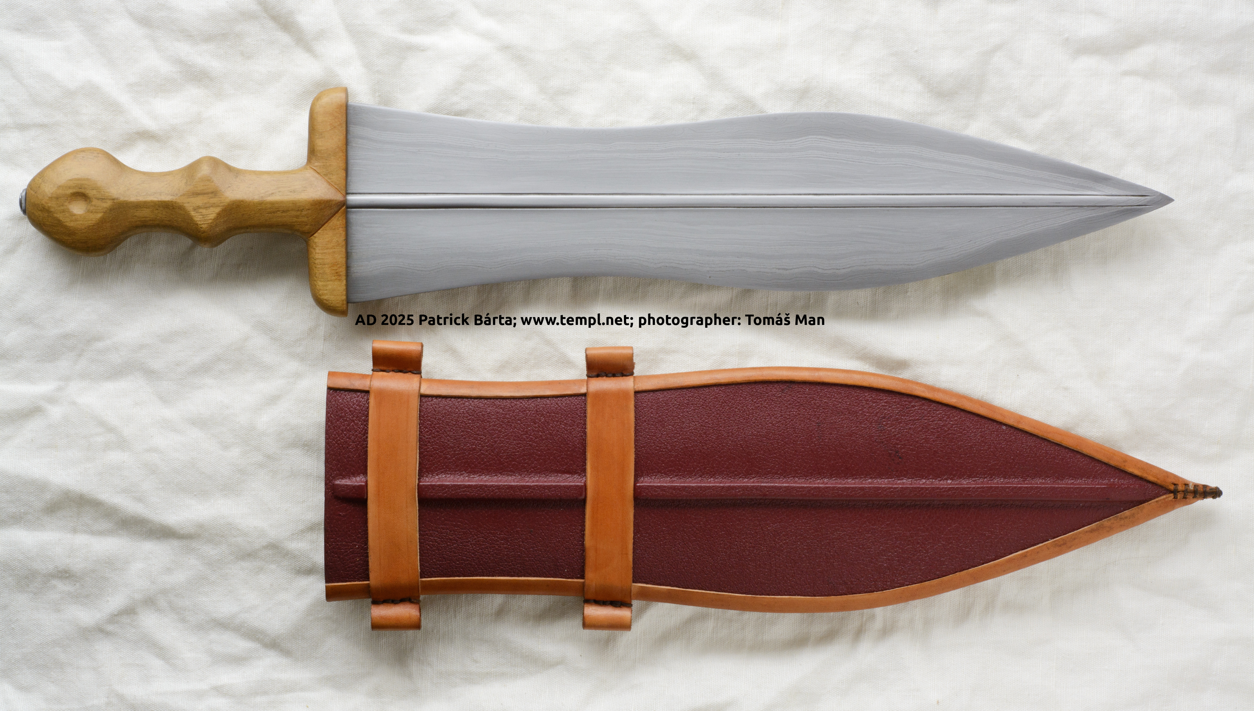 - rukojeť tauzovaná mědí, damasková čepel, jiná možnost rekonstrukce.