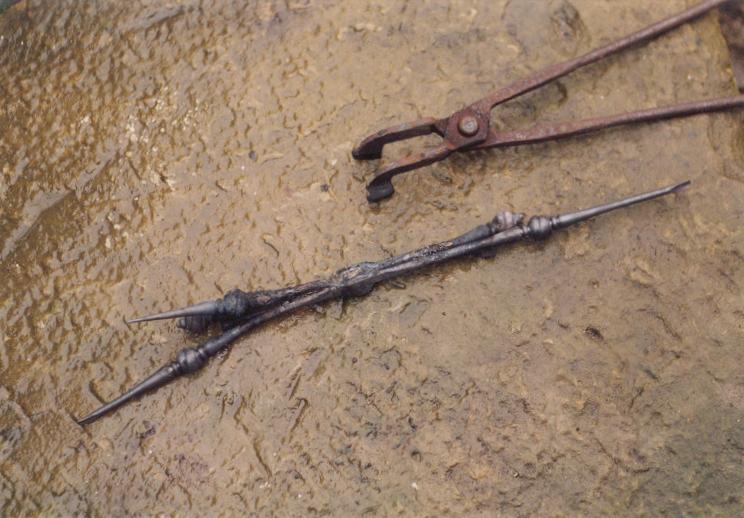 rozklepaný trn- rozklepaný trn na hlavici vikingského meče
