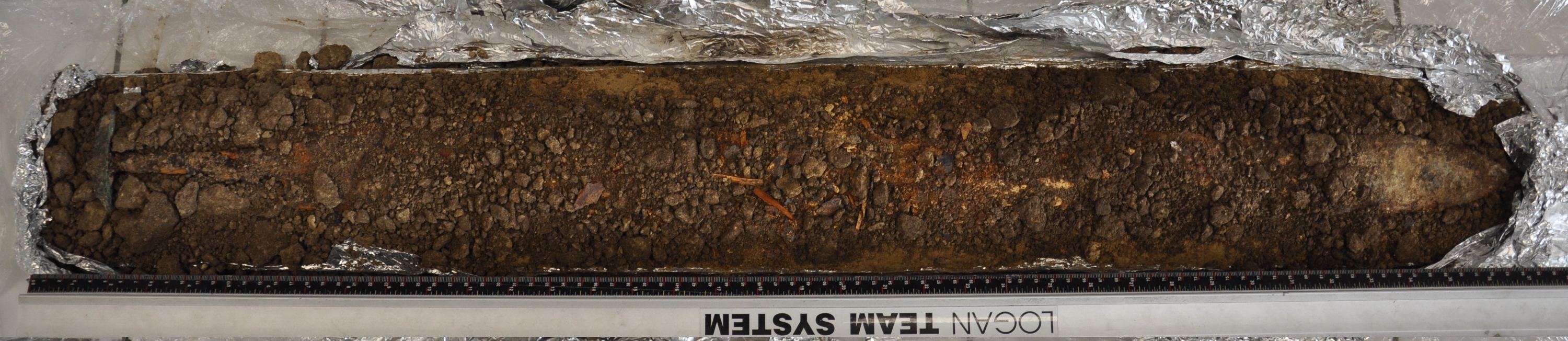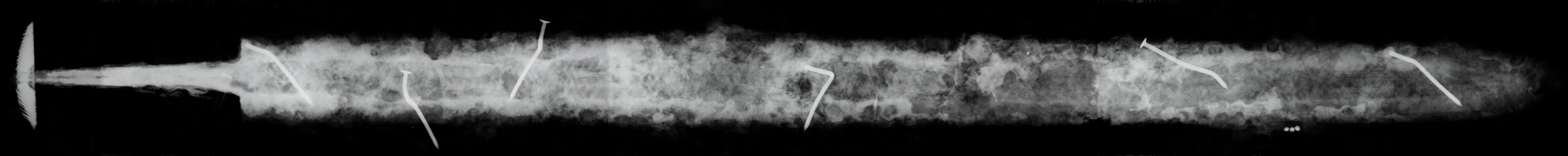 - the x - ray picture of the sword with visible inlaying of the pommel and pattern-welding of the blade