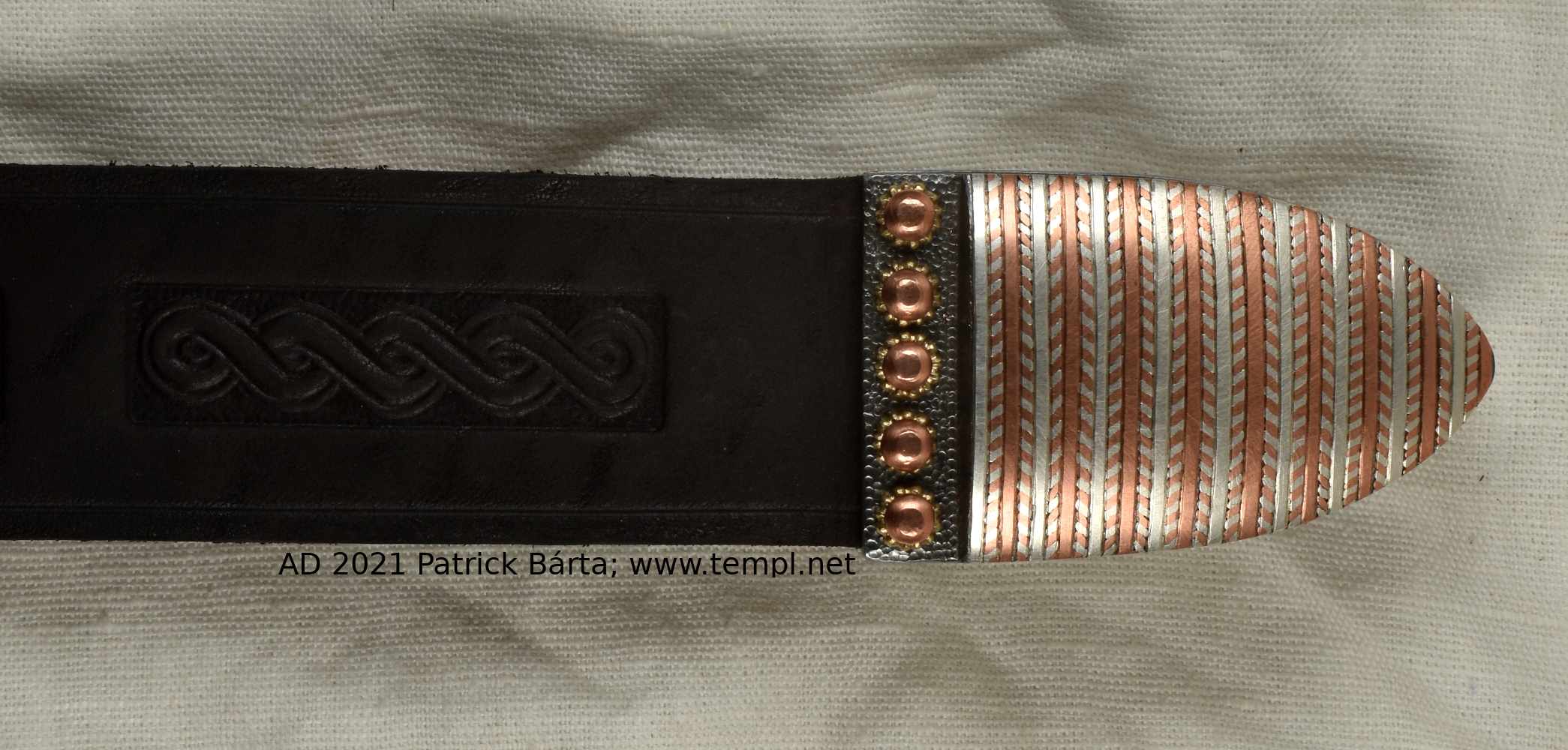 - autor's design, pattern-welded blade, which was extremely rare in those times (only 3 finds in the whole Europe), iron hilt with parts of wood, silver, bone and gold inlays